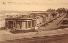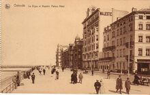 Gedeelte van de Zeedijk ten oosten van het Kursaal. De Zeedijk werd vanaf augustus 1934 de Albert I-promenade. Op de hoek met de Vlaanderenstraat het "Hôtel du Kursaal & Beau Site", wat verder het hotel "Majestic Palace"