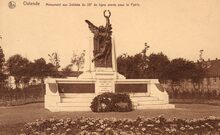 Opgericht in 1923 in een plantsoen nabij de kazerne langs de Graaf De Smet de Naeyerlaan. Het is het werk van beeldhouwer Marcel Rau (1886-1966)