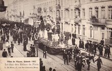 Fêtes de Pâques. Ostende 1907. Le char des Reines de Paris. - Praalwagen van "Les Reines de la Mi-Carême de Paris"