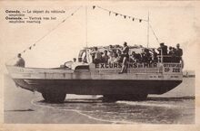 Ostende - Le départ du véhicule amphibie. Oostende - Vertrek van het amphibie voertuig