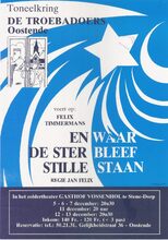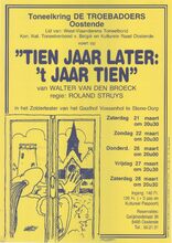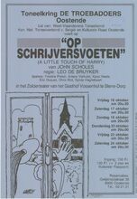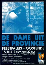 Formaat : 61 x 30 cm. Komedie in 3 bedrijven van Sam Bate. Regie: Katri Wildemeersch. Spelers: Ann Bultiauw, Danny Janssen, Donata Coucke, Claude Barbier, Els Rommelaere, Miet Vanbelle, Geert Cathry, CathΓ©rine Roex, Katrien Vanderbeke en Karl Leroy.