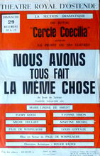 Formaat : 55 x 34 cm. De Jean de Létraz, comédie interprêtée par Marie-Louise De Smedi, Flory Koch, Yvonne Simon, Miche Declusy, Martine Michel, Paul De Wispelaere et Louis Goffaux. Mise en scène de Paul de Wispelaere. Direction Artistique: Roger Rader.