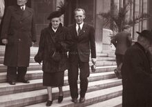 Paul Henri SPAAK op bezoek te Oostende in het Casino-Kursaal. Links van hem Roger DE KINDER, schepen en later gouverneur van Oost-Vlaanderen.