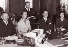 Randall CLIFFORT,voorzitter van de Rotary en echtgenote (rechts) ontvangen te Oostende.Heer en dame links en rechtstaande man onbekend.