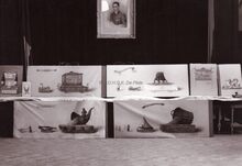 Tentoonstelling moderne kunst in de Koninklijke Schouwburg.