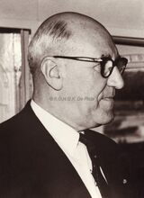 Portret van burgemeester Adolf VAN GLABBEKE. Geboren : Oostende 8 augustus 1904 en overleden in Zanzibar 5 juli 1959. Lid van de Liberale partij. Burgemeester van Oostende van 1953 tot 31.01.1959. Provincieraarslid van West-Vlaanderen. Volksvertegenwoordiger (1936-1959). Minister van Binnenlandse Zaken (1945-1946), Justitie (1946), Openbare Gezondheid (1949-1950), Openbare Werken en Wederopbouw (1954-1955). Voorzitter ACLVB (1944-1959). Hij woonde in de Antwerpenstraat 17 en Albert I-Promenade 67b