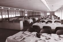 Formaat : 13 x 18 cm. - Plechtige opening van de nieuwe James Ensorgalerij. Rechts vooraan, Berthe Tratsaert, enige vrouw in de gemeenteraad. Vierde van rechts, John Hermans en naast hem gemeenteraadslid Marie-Jozef Porta en schepen François Van Caillie