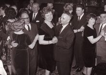 Burgemeester Jan PIERS en echtgenote op het personeelsfeest van "De Zeewacht". Naast hen uitgever, Charles ELLEBOUDT en echtgenote.