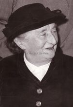 Portret van Bertha TRATSAERT. Zij deelt de eer van eerste vrouw in de gemeenteraad met Caroline PIETERS-ADDAMS (1853-1947), de weduwe van Alfons Pieters. Ze kwamen tegelijkertijd in de gemeenteraad in 1921. Mevrouw TRATSAERT was verpleegster in veldhospitalen tijdens de Eerste Wereldoorlog.