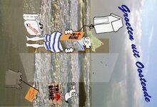Nette stad aan zee iedereen tevree. Aangenaam wonen in een nette stad. Daar streeft het Oostendse stadsbestuur naar. Help mee aan een schoon Oostende ! Doe hondenkakjes steeds in zakjes. Werp afval in de korven. Hou het trottoir en de straatgoot proper. - Getekend, rechts onder : Staf