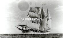 Foto van het zeilschip Mercator. Gedrukt op door Pascal Jeanjean handgemaakt papier uit oude zeilen van Mercator