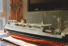 8 foto's in kleur, formaat : 13 x 9 cm. - Maquette van de carferry "Artevelde" gebouwd door Louis Pincket