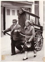 Hotel "Stella Maris". Bubbelinne of Irma Hendrickx deed ook mee. Achter haar zit Bertino of Albert Lingier een andere zeer populaire Oostendse volkszanger. Links, Louis Defloor. Naar verluid (volgens Jef Klausing) had Bubbeline een stem als een klok. Ze kende een enorm repertoire Oostendse en andere liedjes uit het hoofd, ook Engelse die ze bij haar verblijf in Engeland gedurende de Eerste Wereldoorlog geleerd had en die ze met "Oostendse" tongval ten hore bracht. Ze baatte in de [Kadzandstraat 12 ], nabij de oude Vismarkt een herberg uit waar tot in de jaren vijftig veel gezongen werd en die ook bij niet-Oostendenaars bekend was. Liederen als "Lange Tjes", het "Nunnetje" en "Op de Vismarkt" behoorden tot haar repertoire. [Adres] medegedeeld door Freddy Hubrechtsen