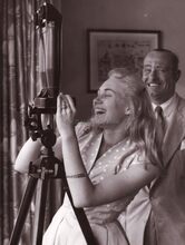 De Franse filmactrice Mylène Demongeot ergens aan de Albert I-promenade van Oostende, tijdens de Faminaprijs voor film 1956