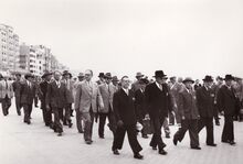 De delegatie die deelnam aan de "Koloniale Dag" aan het Leopold II-monument, hier op de Albert I-promenade nabij "Petit Nice"
