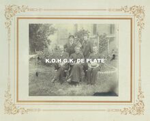 Formaat : 13 x 17 cm. - Uiterst links met hoed, Louis Pincket