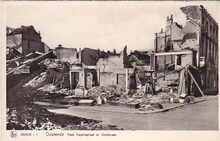 VernieldeΒ woningen in de Vlaanderenstraat richting Wapenplein. Het kruispunt is dat met de Langestraat. Het centrale vernielde hoekpand is de plaats van het huidigΒ restaurantΒ "Benny". Het huis er rechtover was een tabakszaak.