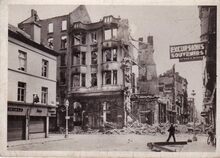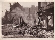 Vernielde woningen in de Kapellestraat, met op de hoek van de OoststraatΒ radiohandel De Meester