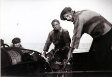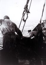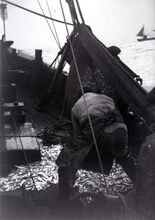 Foto z/w 13x18 + negatief. Op sprotvangst met de O.111 "Yvonne".