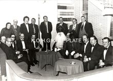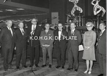 Eerste rij : Stadssecretaris Gaston Van Laere ; schepen Gerard DaniΓ«ls ; mevr. Deceuninck ; schepen Raoul Bonnel ; mr. Louis Pincket ; mr.Roger Gevaert ; mr. Leon Vanstechelman (directeur) ; mevr. Minne ; mr. Minne(onderdirecteur) ; mr. Luc Lijsen.Β