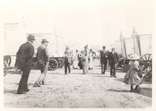 Star. - Strandrecreatie op het Groot Strand gezien ten westen van het Kursaal, richting het Koninklijk Chalet (midden) en op het einde het Royal Palace Hotel. Links, de Zeedijk en de grote hotels.