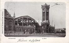 Edit. V.G.[=Victor Grégoire], 42, Avenue du midi, Bruxelles. - Ostende - La Gare. - Bijgekleurde prentkaart. - Gelegen aan de Vandersweepplaats, nu Ernest Feysplein op de Hazegraswijk. Literatuur : Bouwmeesters van Oostende-Belle-Epoque. XIV. Felix Laureys / Norbert Hostyn. In : De Plate, 1978, p.105-106. Raadpleegbaar via de Plate in PDF-formaat.
