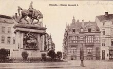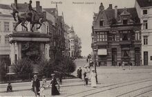 Nels serie 13 nr 41. Ostende. Monument Léopold I. Met zicht op de Kemmelbergstraat. Let op de modieuze kledij van de "rijke" vakantiegangers in de Belle Epoque.