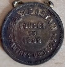 Op de keerzijde : rondom een parelrand, rondom boven β FEUILLE DβETAIN β , rondom onder PAUVRES HONTEUX, centraal horizontaal in een matrijs FONDEE / EN / 1892