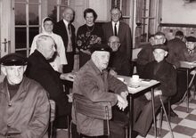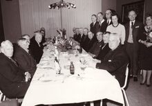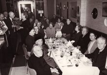 Een banket voor senioren (?) rechtstaand tweede van rechts schepen Marie-Jozef PORTA en tweede van links John Hermans journalist en, gemeenteraadslid.