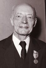 Portret van schepen Marie-Jozef Porta met ereteken. Hij was o.a. gemeenteraadslid van 1933 tot 23/08/1974 en waarnemend schepen van 25/03/1966 tot 18/06/1968. Consul van Monaco en vice-consul van Denemarken.
