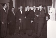 De jury van de belgische Feminaprijs voor de film in het Kursaal. Vierde van rechts, mevrouw Van Glabbeke, zevende, de burgemeester Adolf Van Glabbeke