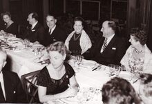 Derde en vierde van rechts mevrouw VAN GLABBEKE en burgemeester Adolf VAN GLABBKE op een banket.