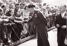 Veldmaarschalk MONTGOMERYΒ op het Canadaplein bij het publiek tijdens zijn tweede bezoek aan Oostende.