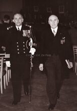 Kapitein ter Zee Delforge en Robert Elleboudt, voorzitter van het "Verbond der Oudstridersmaatschappijen van Oostende " (VOSMO)Β