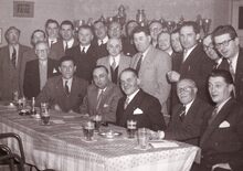 Feest bij de gekende aannemersfirma VAN COILLIE ,burgemeester Adolf VAN GLABBEKE aan het banket midden tussen de familie naast hemΒ weduwe J. VAN COILLIE.