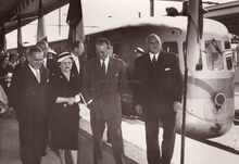 Werfbezoek door burgemeester Adolf VAN GLABBEKE, achter hem schepen Kamiel DEHOUCK. Duin en Zee ?