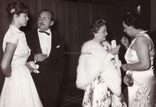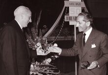 Middaguur. De receptie. Burgemeester Adolf Van Glabbeke in het gezelschap van fotograaf Maurice Antony (links).