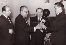 Huldiging van Danny MASURE,derde van rechts,4e PIERS S. en 5e Luc VARENNE gekend radiojournalist (franstalige).