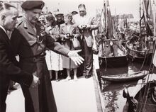 Burgemeester Adolf VAN GLABBEKE en veldmaarschalk MONTGOMERY op de Visserskaai nabij het Montgomerydok.