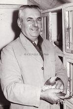 Gemeenteraadslid Facon Jules, gekende garagehouder en een duivenmelker, in zijn hok.