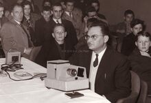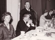 Links vooraan Toni CORSARI,een zeer gekend TV presentator toen,bij een optreden in het lokaal van biljartclub "Willen is Kunnen" en Manillersclub "De Kloppers".Centraal in de zaal burgemeeester Jan PIERS en echtgenote.(Zelfde foto als 2012/0184)