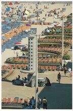 Tropic T 71. - Gedeelte van de badinstallaties onder de Albert I-promenade. De voorbehouden zone van de "Lido" met strandzeilen. Strandrecreatie op het Groot strand
