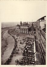 Albert, N° 97. - Luchtopname van de westgevel van het derde Kursaal langs de Albert I-promenade. Ook "Petit Nice" genaamd. Detail van de gevel van "Hotel Wellington" en terrassen. Links, het Groot Strand.