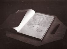 Het Gulden Boek van de Stad met de handtekening van veldmaarschalk Montgomery bij zijn eerste bezoek aan Oostende.