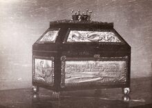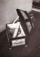 Het geopend schrijn dat door de stad geschonken werd aan veldmaarschalk MONTGOMERY bij zijn eerste bezoek aan Oostende. Het bevatte de oorkonde van zijn ereburgerschap van de Stad Oostende.