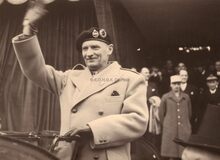 Veldmaarschalk MONTGOMERY met naast hem schepen Emiel VROOME.