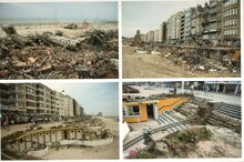 Tropic T 74. - Mulitkaart van 4 foto's: de afbraakwerken van de badinstallaties onder de Albert I-Promenade in september 1997