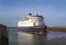De M.S." Prinses Paola" in de havengeul van Oostende. Sealink was de handelsnaam waaronder de Britse staatsspoorwegmaatschappij British Rail tussen 1970 en 1984 diverse veerdiensten vanuit het Verenigd Koninkrijk naar Frankrijk, BelgiΓ«, Nederland... onderhield