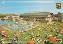 Stedelijk zwembad AVM A. 209. Het Stedelijk Zwembad met zicht op het buitenzwembad.