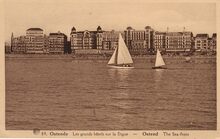 Albert, N° 89. ) Ostende - Les grands hôtels sur la Digue. Ostend - The Sea-front. - Zicht vanuit zee met de grote hotels langs de Albert I-promenade.
